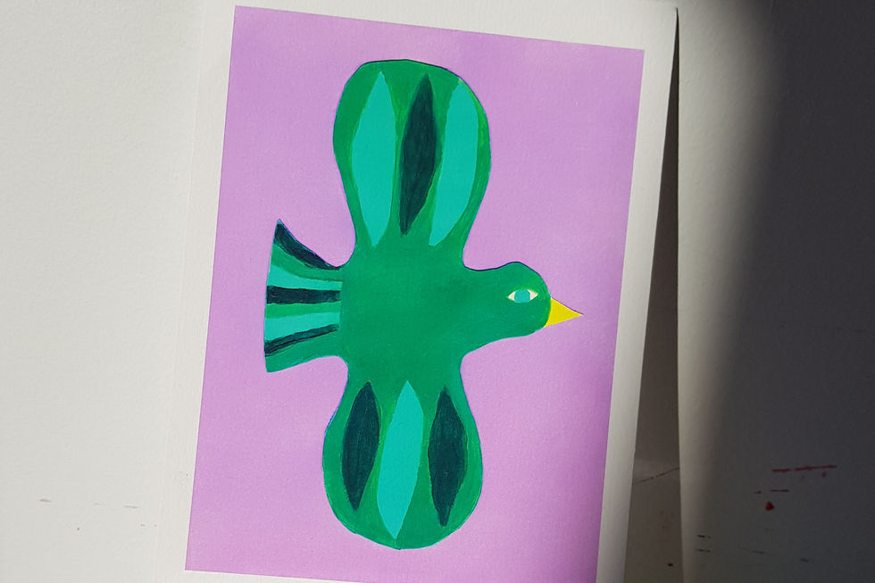 Oiseau vert sur fond lilas (A4)